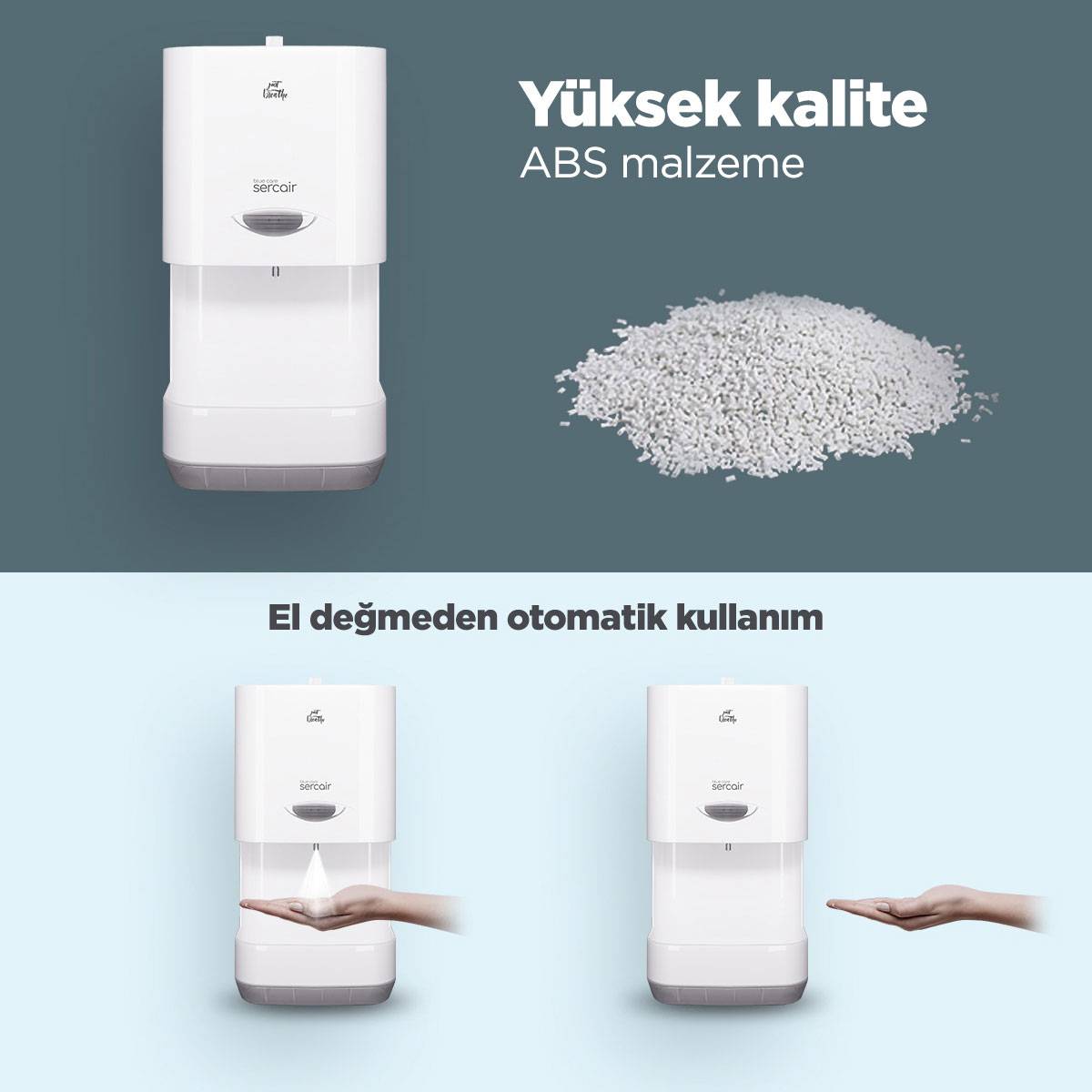 Duvara monte edilerek kullanılan otomatik sensörlü el dezenfektan makinesi Sercair Vision, 1000ml kapasiteye sahip ve küçük mekanlar için yeterlidir, orta yoğunlukta alanlar için ise 1500ml kapasiteye sahip Sercair Blue Care ve büyük alanlar için 2000ml kapasiteye sahip Sercair Blue Care L çok daha kullanışlı bir ürün olacaktır.